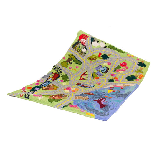 Childrens Play Mat City Roads, Train and Beach with Flowers