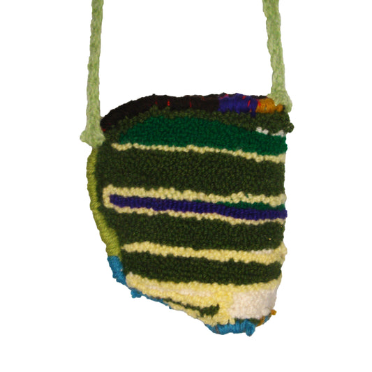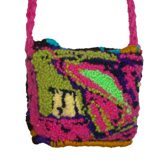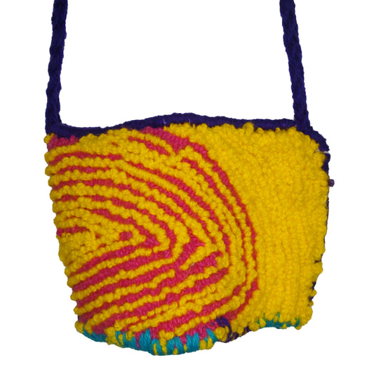 BAG: Yellow and pink spiral with purple strap over the shoulder little bag